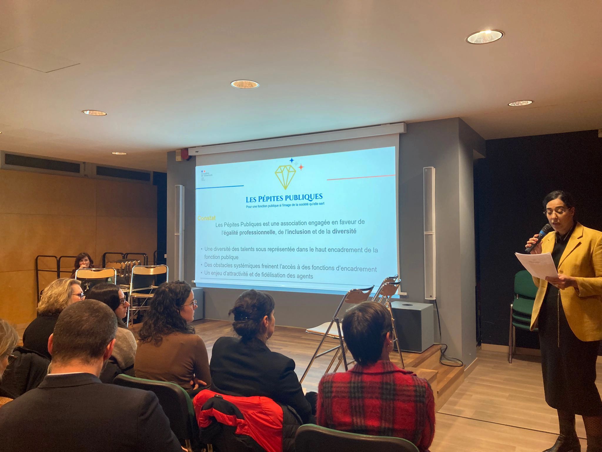 Lors de sa présentation, Sarah El Mottalib, présidente et fondatrice du réseau 💎🇫🇷 Les Pépites Publiques a abordé le ❤️ de notre action : la mixité et la diversité dans la fonction publique. 💡✨